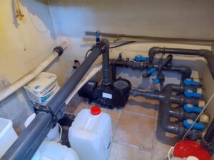 La fuite a été localisée dans la canalisation enterrée côté local technique.